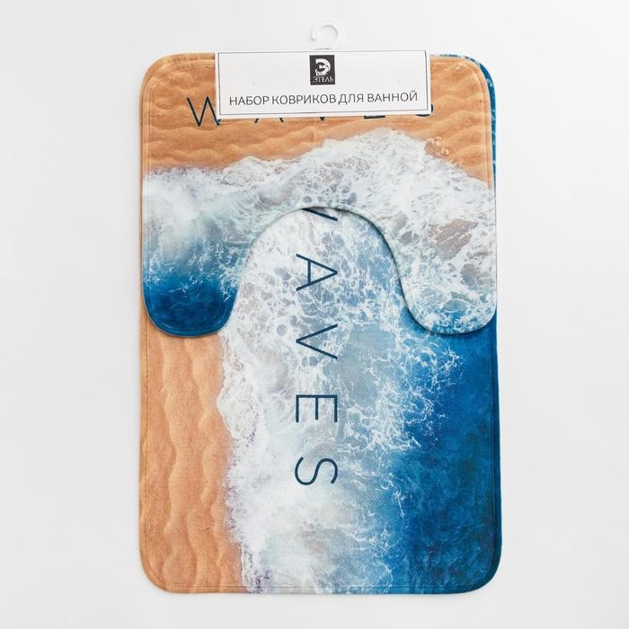 Набор ковриков для ванной Этель «Waves» 2 шт, 80×50 см, 50×40 см, велюр