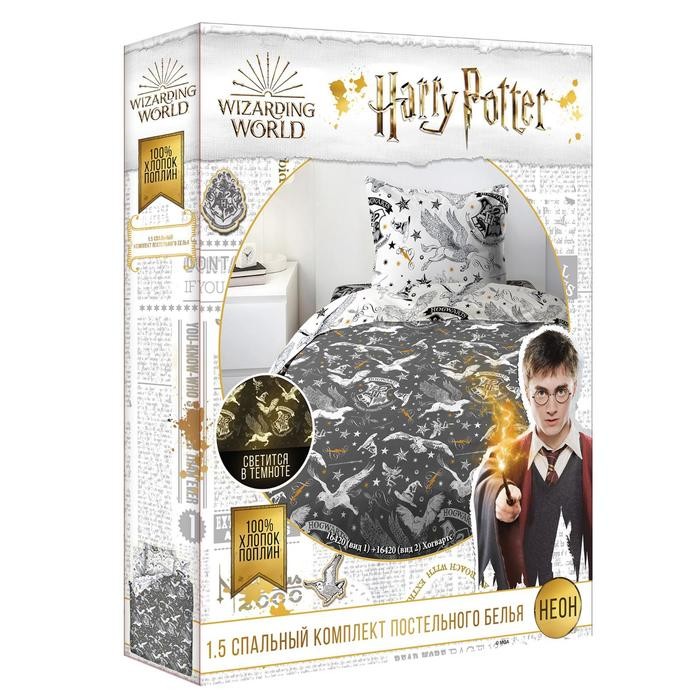 Постельное бельё 1.5 Гарри Поттер Neon «Хогвартс» 143×215, 150×214, 70х70см-1шт