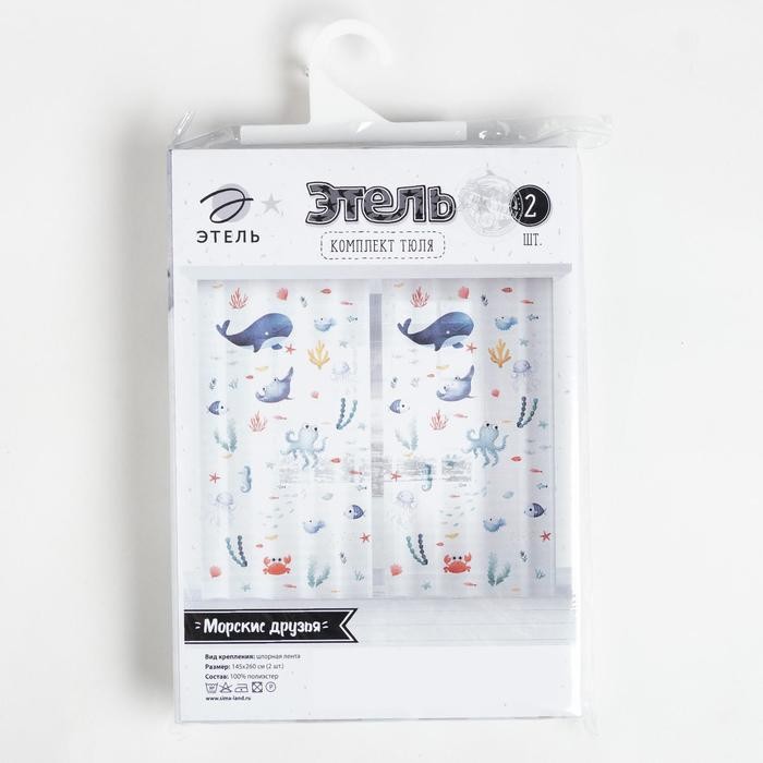 Комплект тюлей «Этель» Морские друзья, 145*260 см-2 шт, вуаль