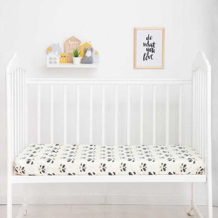 Простыня на резинке «LoveLife» Милые панды 60*120+20 см, 100% хлопок, сатин