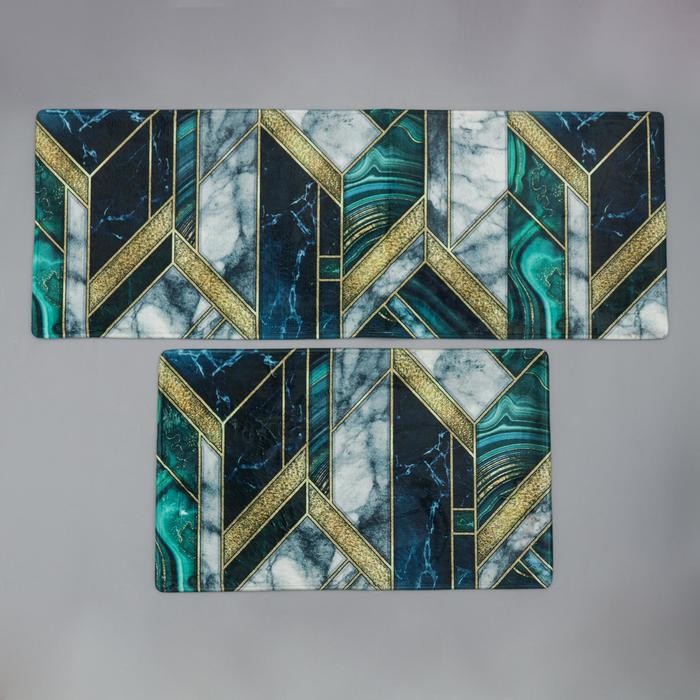 Набор ковриков для ванны и туалета Доляна «Малахит», 2 шт: 45×120, 45×75 см