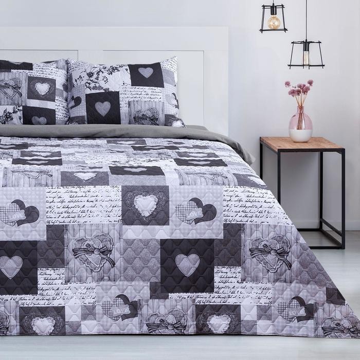 Комплект «Этель» Grey heart, покрывало 180×220 ±5 см и наволочки 50×70 — 2 шт, микрофибра