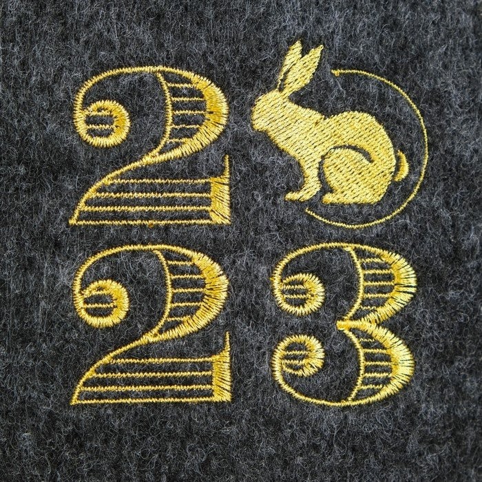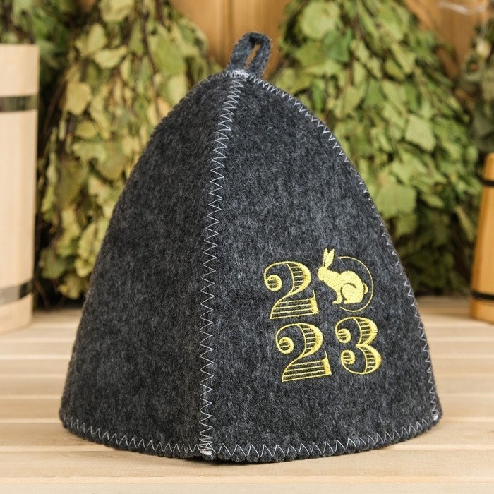 Шапка для бани «Классическая» серая с вышивкой «2023» серая (кролик) (эконом)