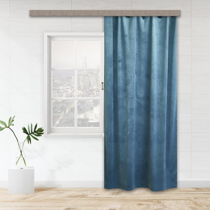 Штора портьерная Вельвет однотонный 135×260 см, морская волна, пэ 100%