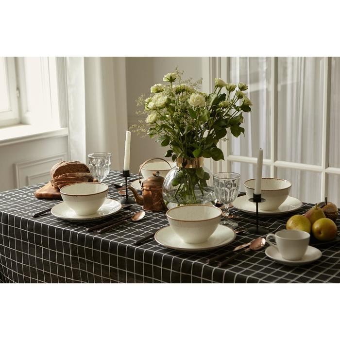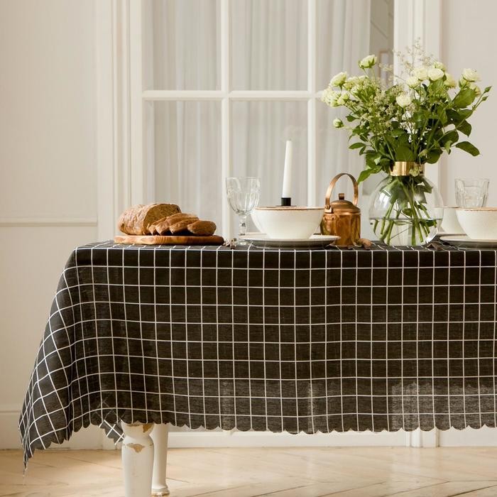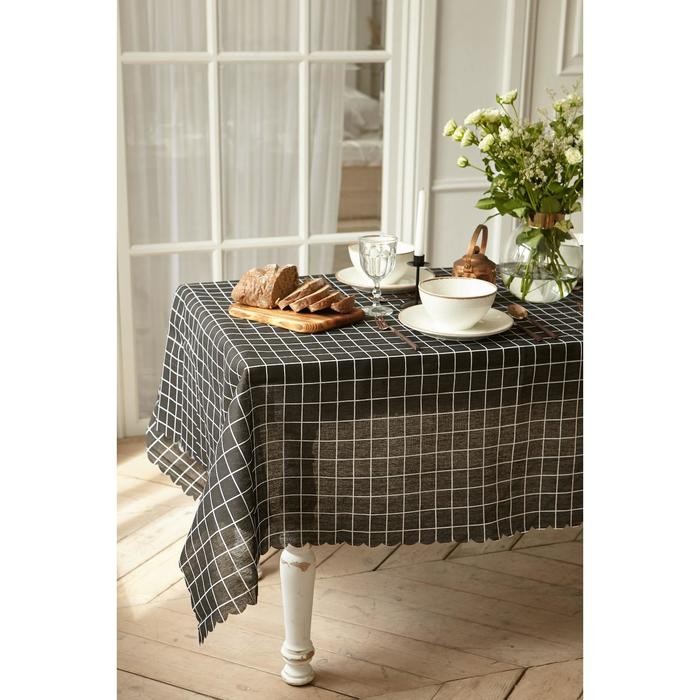 Скатерть Доляна «Клетка"цв.черный 145×200±3см,100%пэ, рогожка 130 гр/м
