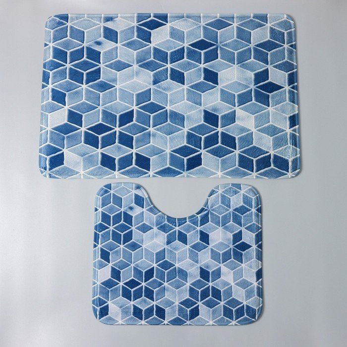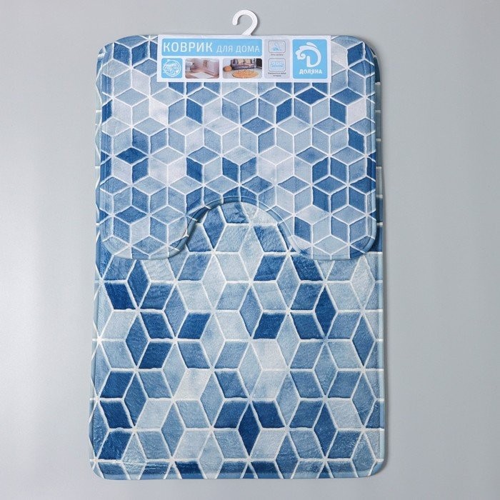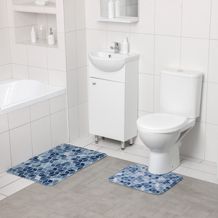 Набор ковриков для ванны и туалета Доляна «Бурлеск», 2 шт: 50×80, 40×50 см, цвет синий