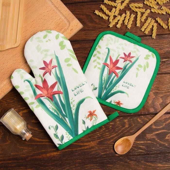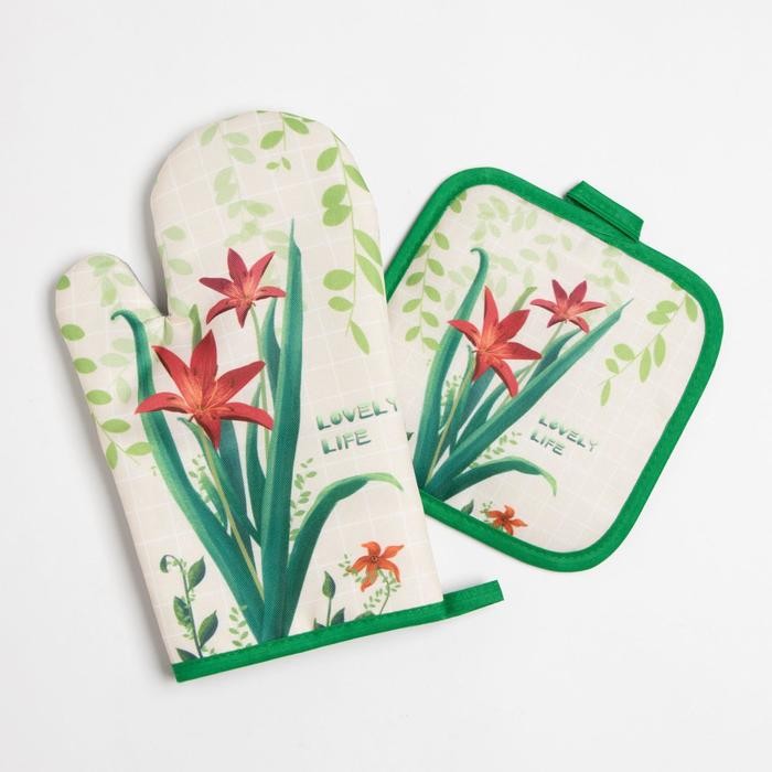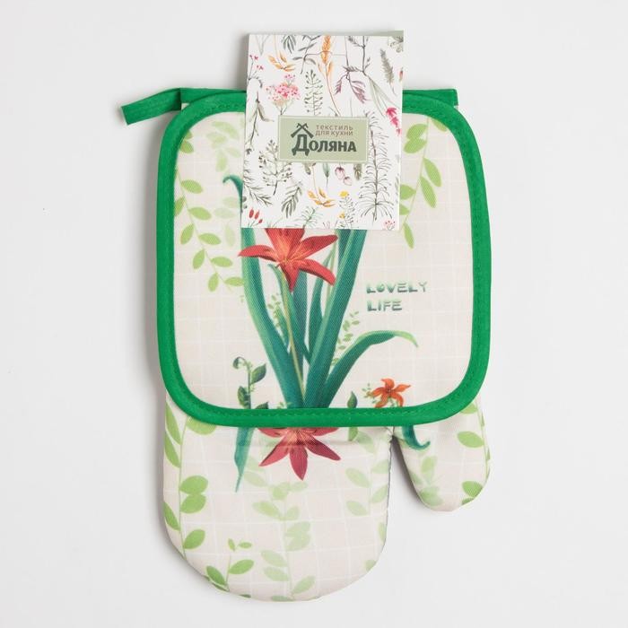 Кухонный набор Доляна Lovely life, прихватка 17*17 см, рукавица 26*16 см,100% п/э