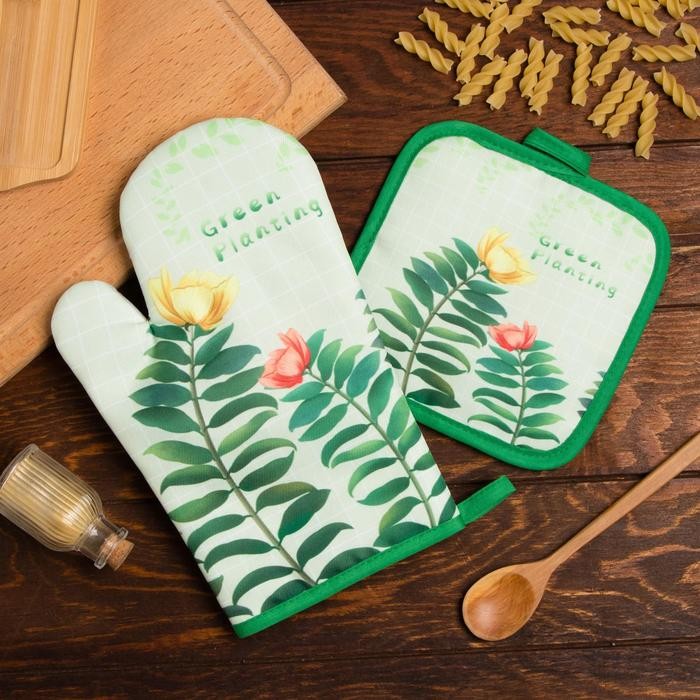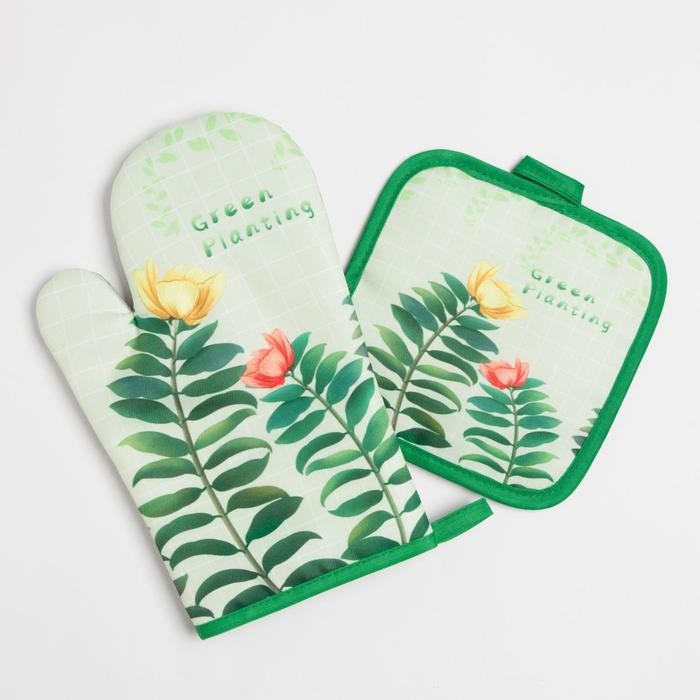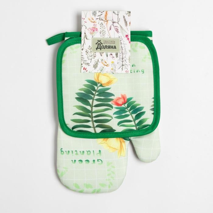 Кухонный набор Доляна Planting, прихватка 17*17 см, рукавица 26*16 см,100% п/э