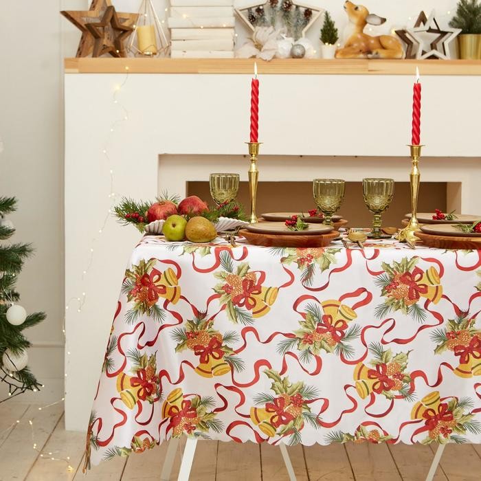 Скатерть Доляна «Новый год: Новогодние колокольчики» 145*300 +/- 2 см, 100% п/э