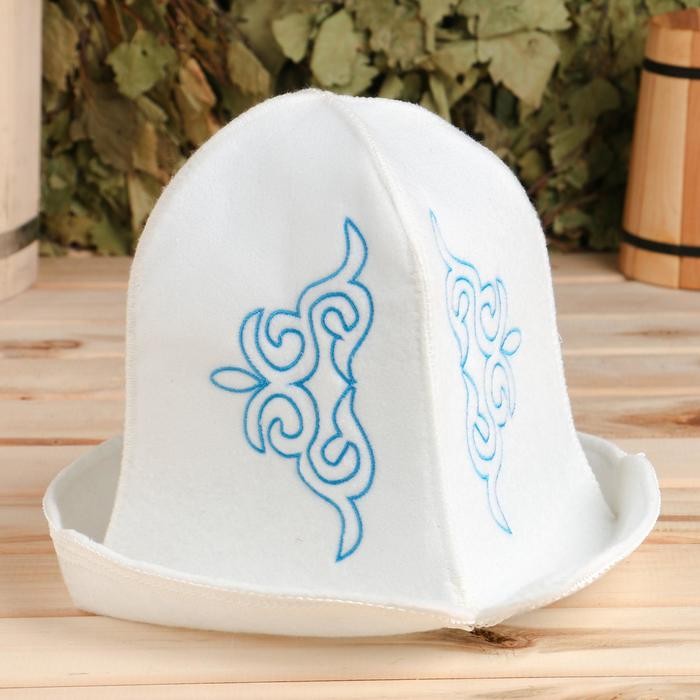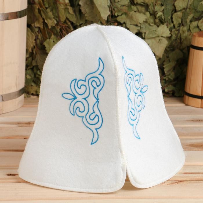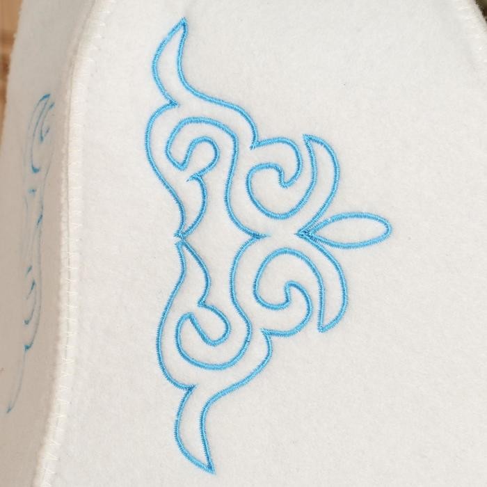 Шапка для бани с вышивкой «Казахстанский колпак женский» с голубыми узорами