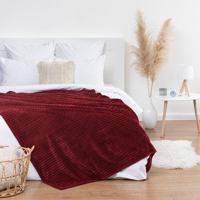 Плед Этель «Клетка» 200*220 см, цв.красный,корал-флис, 240гр/м2, 100% полиэстер
