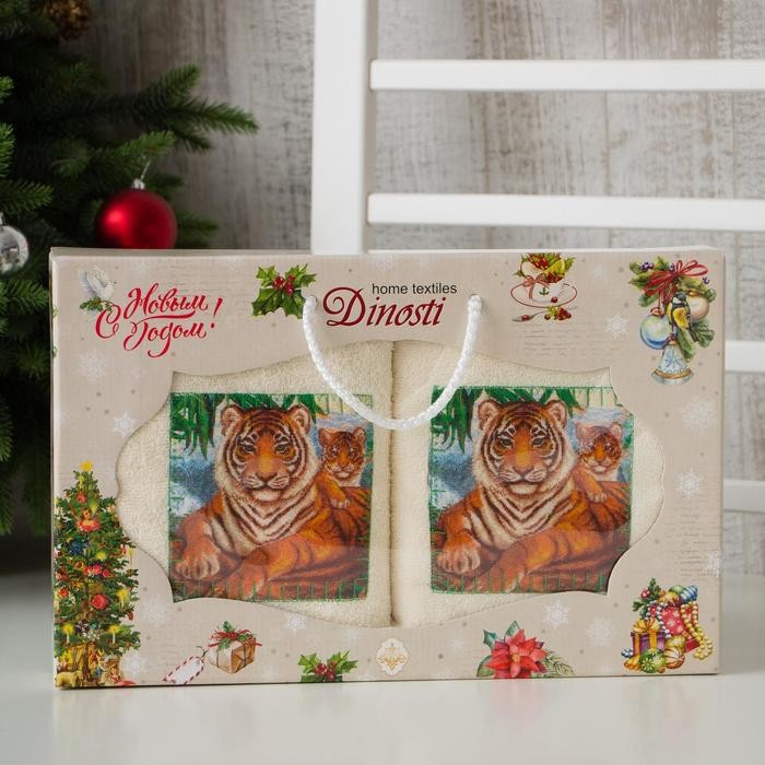 Новогодние полотенца (подарочный набор 2 шт.) Королева джунглей 40х70см, бежевый, хлопок 100%, 400г/м2