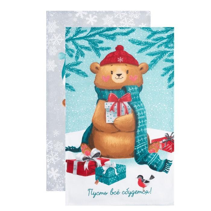 Набор кухонных полотенец «Новогодняя Сказка праздник в городе» 35х60см-2шт, 100% хл
