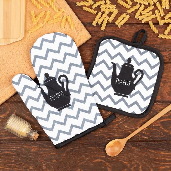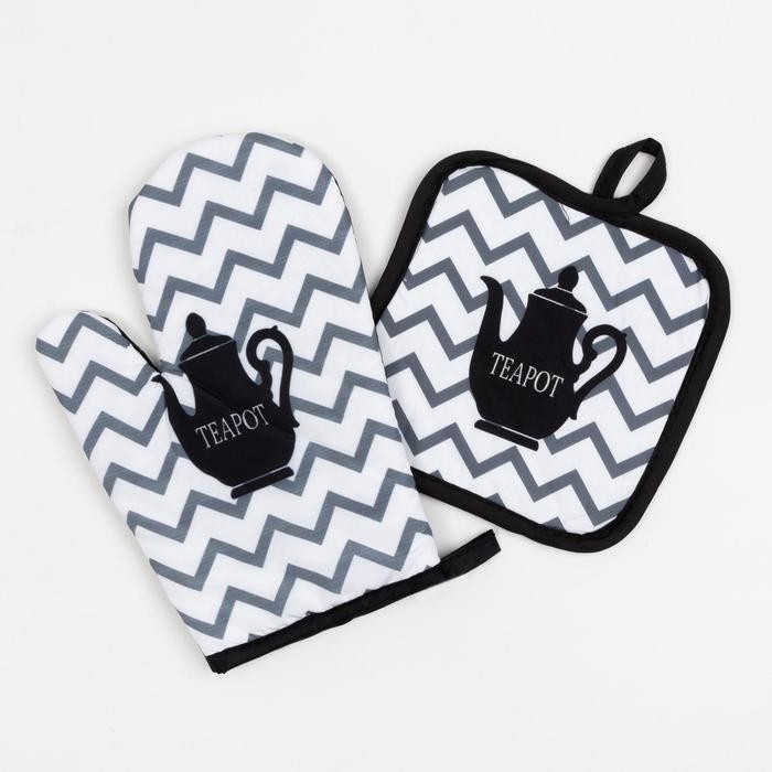 Кухонный набор Доляна Teapot, прихватка 17*17 см, рукавица 26*16 см,100% п/э