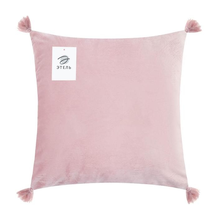 Наволочка на подушку с кисточками Этель цвет розовый, 45×45 см, 100% п/э, велюр