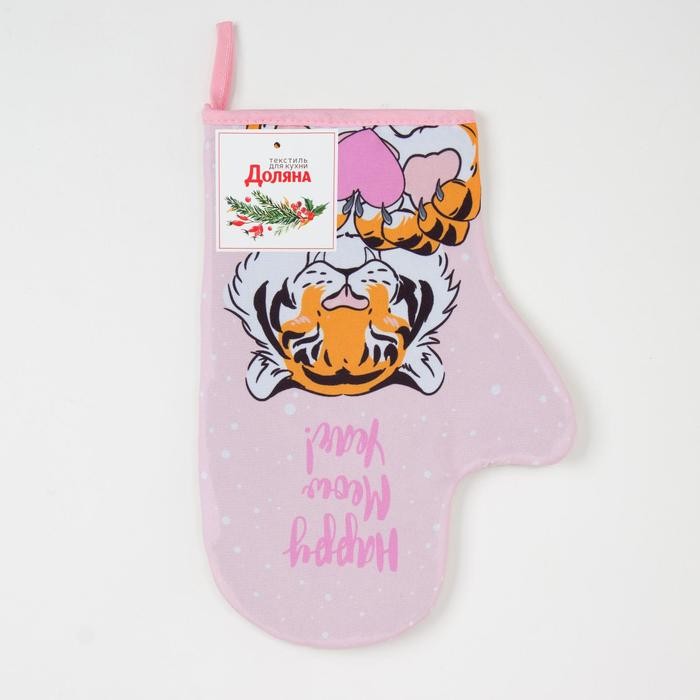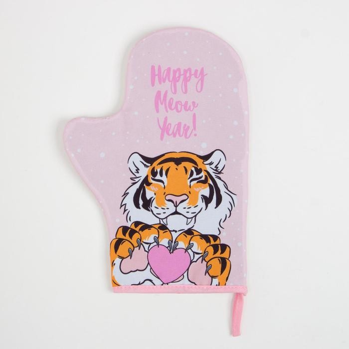 Варежка-прихватка «Happy meow year» 20х28см,35% х/л,65% п/э,ватин 250г/м2