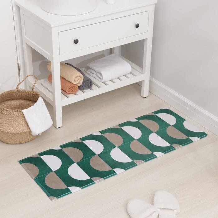 Коврик Доляна «Сфера», 45×120 см, цвет зелёно-бежевый