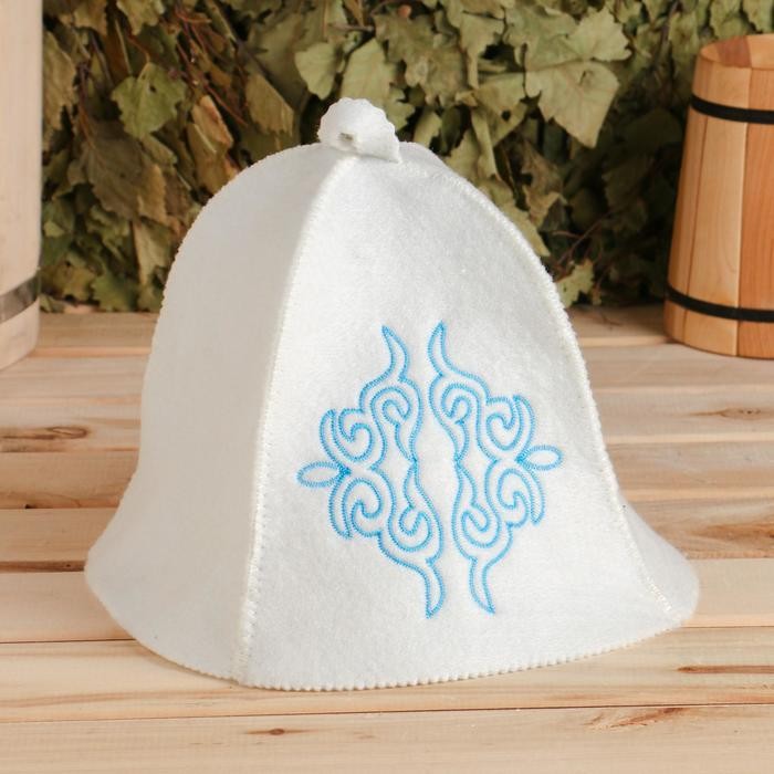 Шапка для бани с вышивкой «Степной ветер» голубой узор