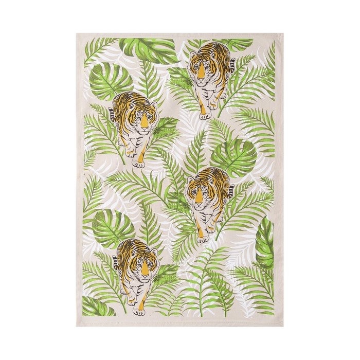 Полотенце 39×60 см, Тигр в листьях, бежевый, 200 гр/м хл