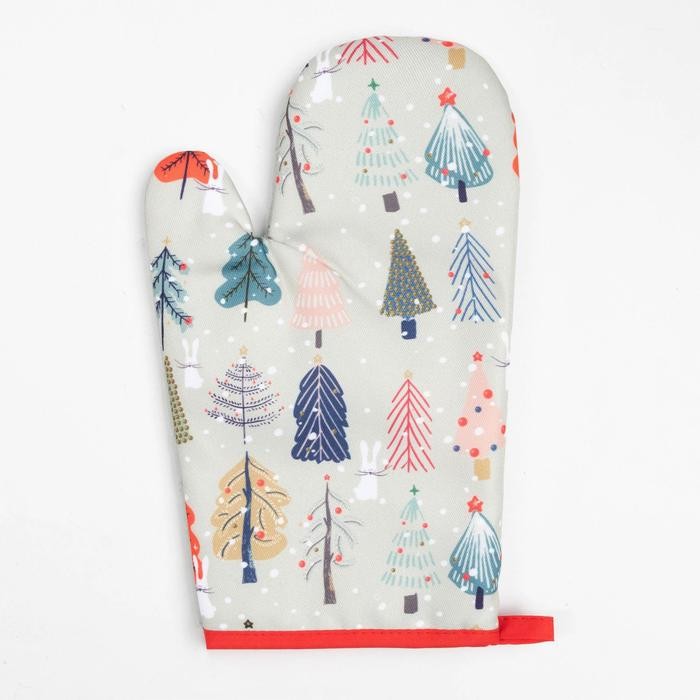 Кухонный новогодний набор Доляна «Новогодний лес», прихватка 17х17см, варежка-прихватка 26×16 см,100% п/э