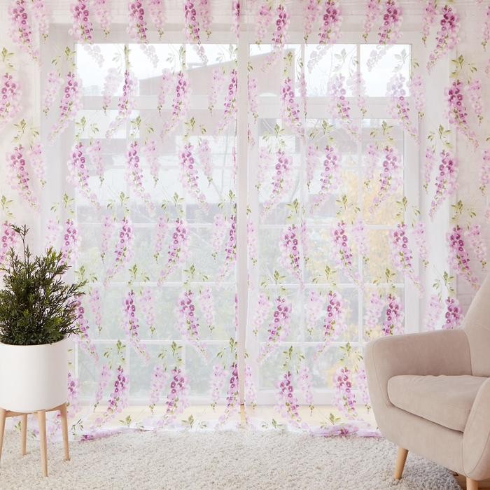 Тюль «Этель"Виноградная лоза (лиловый) б/ утяжелителя, ширина 280 см, высота 270 см