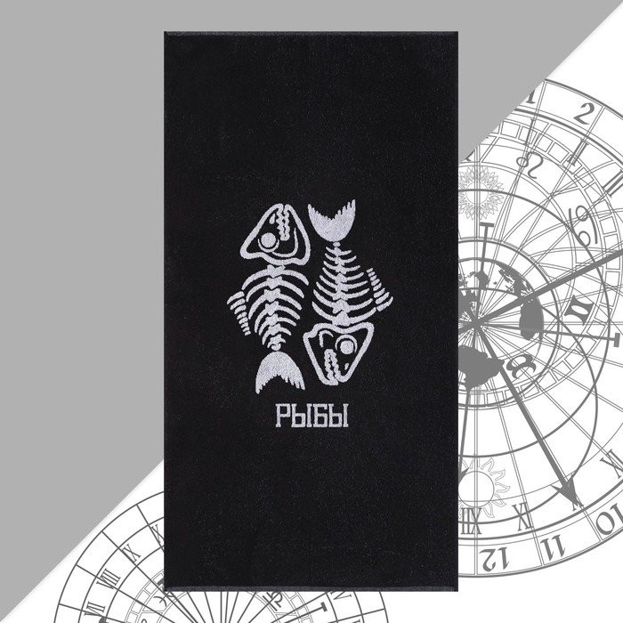 Полотенце махровое Этель «Знаки зодиака: Рыбы» чёрный, 67×130 см, 420 гр/м2, 100% хлопок
