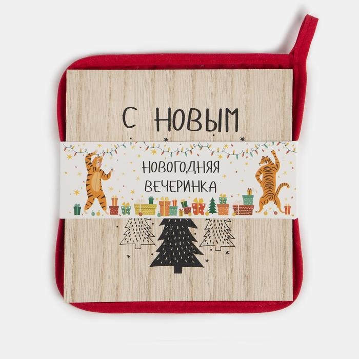 Новогодний подарочный набор кухонный «Время чудес» подставка, прихватка