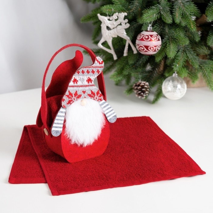 Полотенце в корзинке Экономь и Я «Гномик» 30*60 см, цв. бордовый, 100%хл, 320 г/м2
