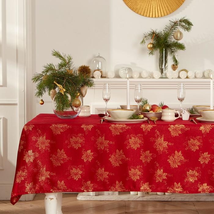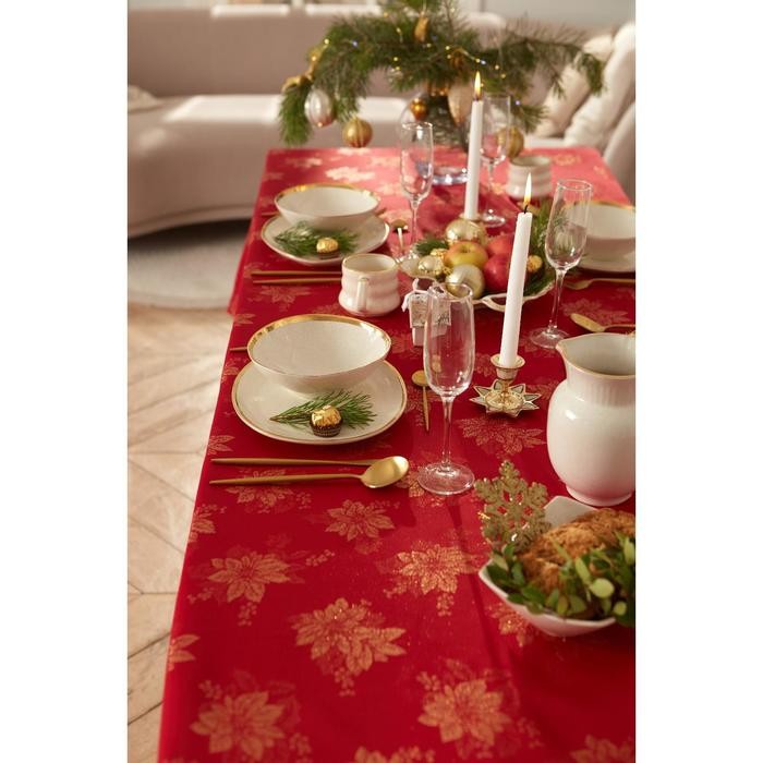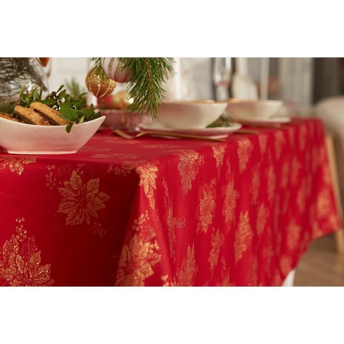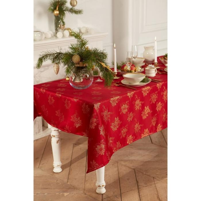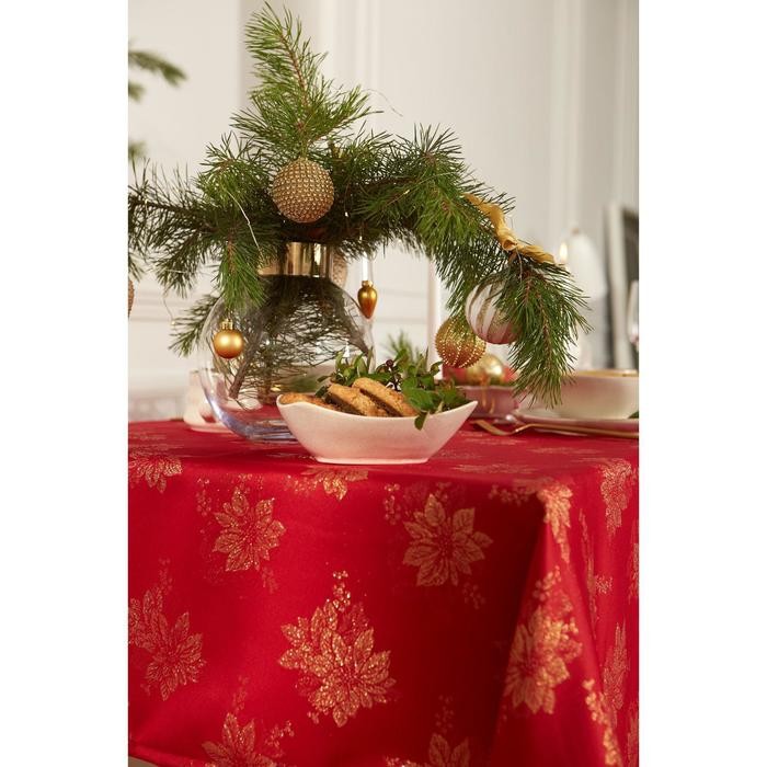 Скатерть Этель «Пуансеттия» цв.красный, 142*180 +/-3 см, 115 ±10 гр,100% п/э