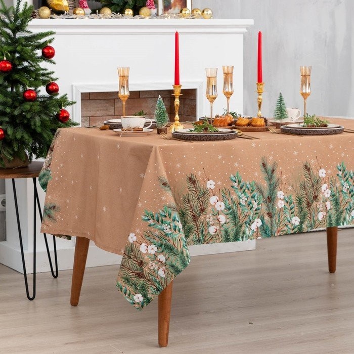 Скатерть новогодняя Этель «Новый год: Fir branches» 144х180см, 100%хл, 190г/м2