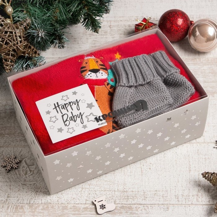 Новогодний подарочный набор Крошка Я «Тигруля», плед 90х100см, пинетки 10−12 см
