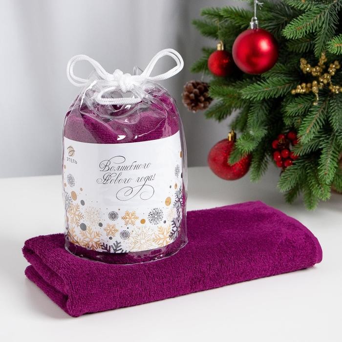 Полотенце подарочное Этель «С Новым годом» цв.фуксия, 50х90см, 100% хл, 340 г/м2