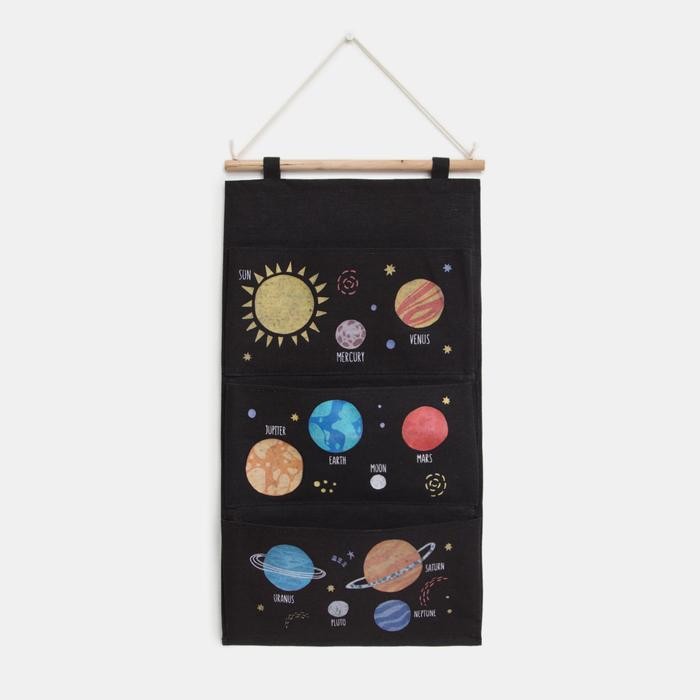 Кармашек текстильный Этель «Солнечная система», 3 отделения, 34*63,5 см