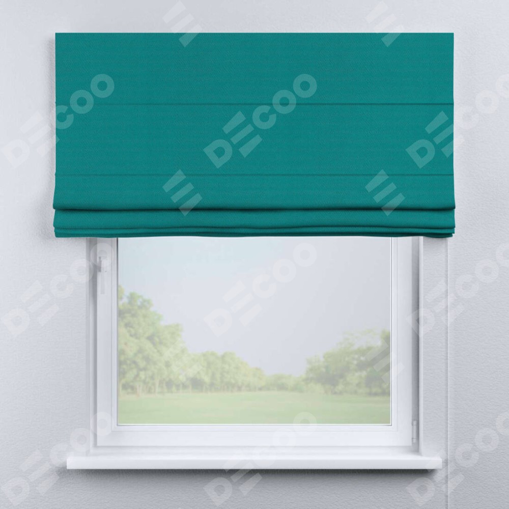 Римская штора производителя «Cortin», используется для проёма, пошита из ткани блэкаут однотонный бирюзовый, артикул ткани 88297. Имеет универсальный механизм и подходит для монтажа: на потолок, на стену и в нишу.