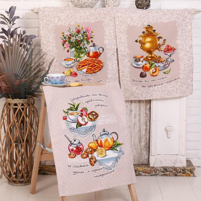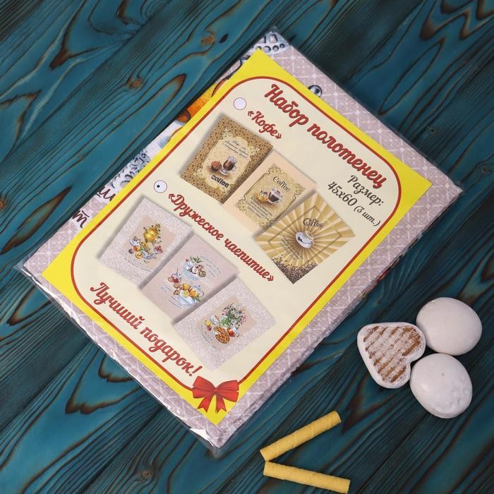 Набор полотенец в пакете Дружеское чаепитие 45×60 см, 3 шт, вафля, 170 гр/м2, хлопок 100%