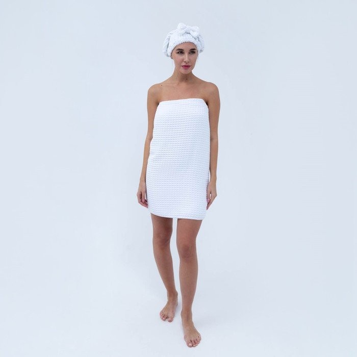 Набор для бани и ванной Этель «Вафля» полотенце 70*140 см+чалма 21*25 см, цв.белый