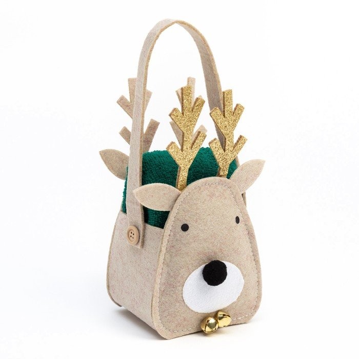 Полотенце в корзинке Экономь и Я «Олень» 30*60 см, цв. изумрудный, 100%хл, 320 г/м2