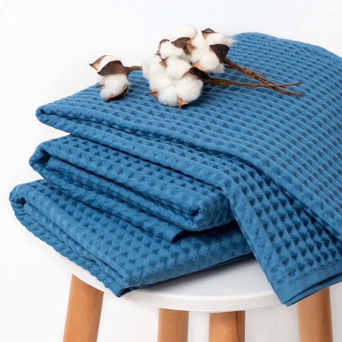 Полотенце вафельное банное Этель «Boho» 67*140 см, цв. синий, 100% хл, 290 гр/м2