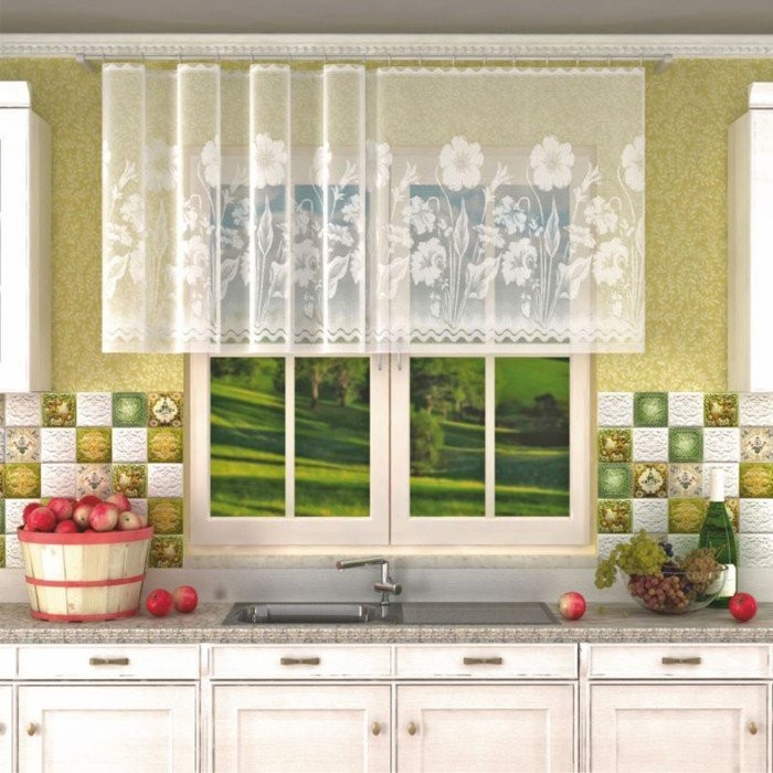 Тип тюли: Готовый, Короткий, С рисунком