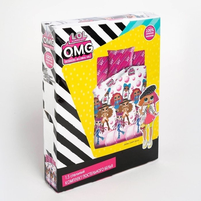 Постельное бельё 1.5сп LOL OMG «Диско» 143×215, 150×214, 70×70−1шт, поплин 105г/м хл100%