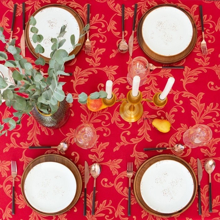 Скатерть Этель «Patterns» цвет красный, 142*110 +/-3 см, 115 ±10 гр,100% п/э