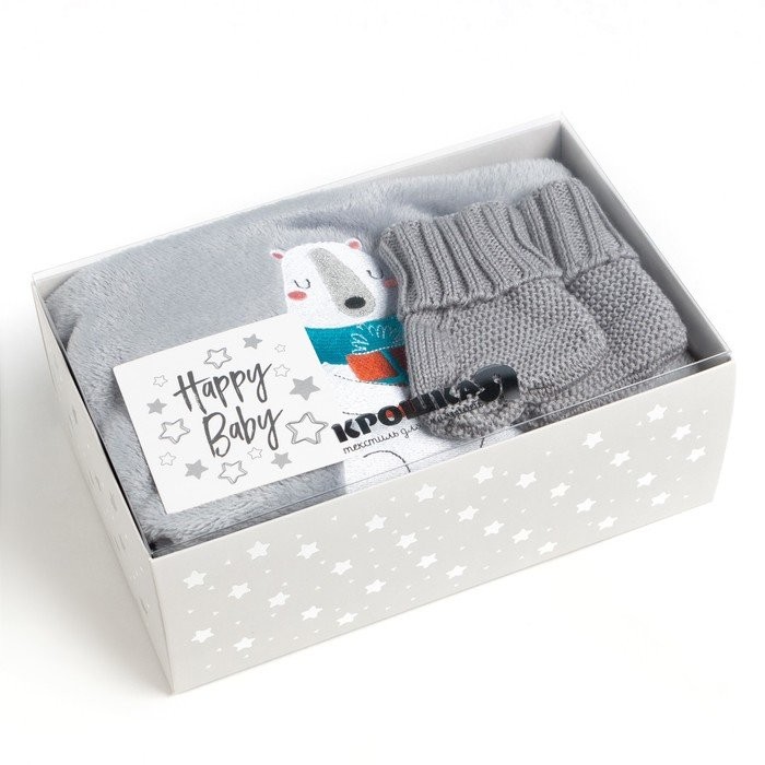 Подарочный набор Крошка Я «Мишка», плед 90х100см, пинетки 10−12 см