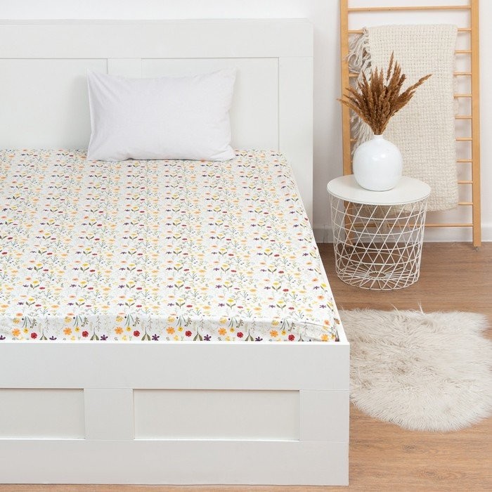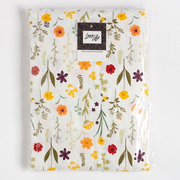 Простыня на резинке LoveLife 160*200*25см, «Цветочная поляна», 100% хлопок, сатин, 125г/м²