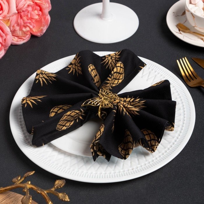 Набор салфеток с декорат. кольцами «Golden pineapple» 46×46 см — 2 шт,100% хл, саржа 190гр/