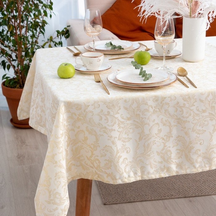 Скатерть Этель «Venzel» цв.золото, 142*283 +/-3 см, 115 ±10 гр,100% п/э