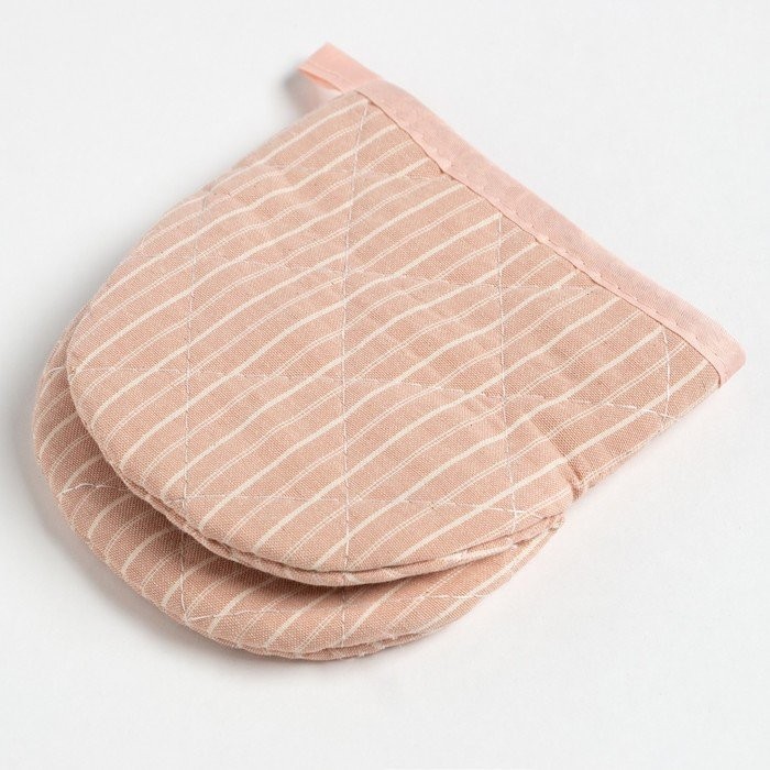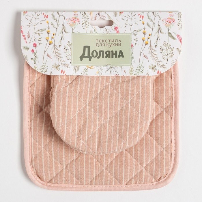 Кухонныйнабор Доляна «Полосы», прихватка20х20см, варежка12х15см, пудровый, 50%п/э, 50%хл