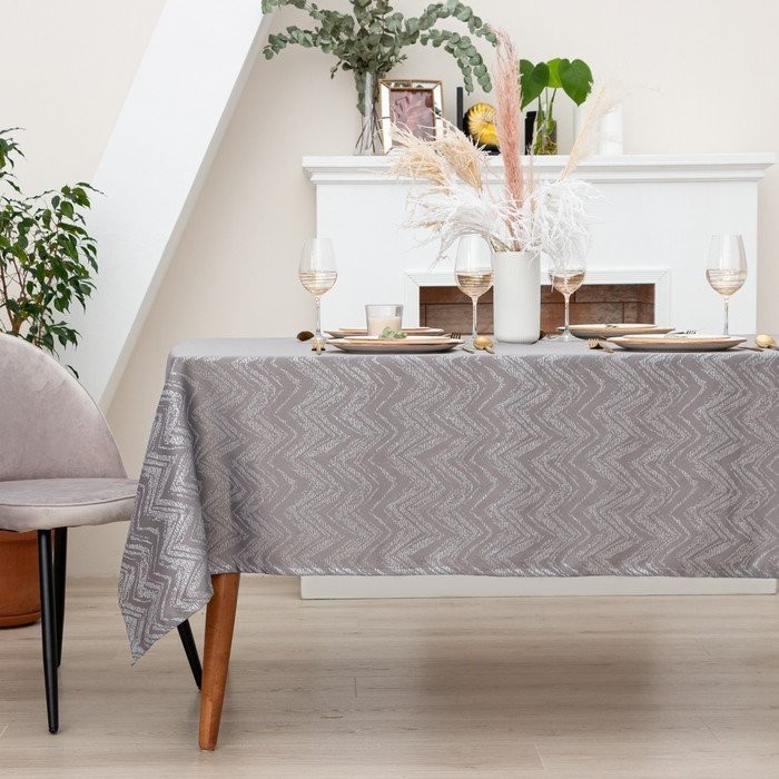 Скатерть Этель «Lines» цв.серый, 142*180 +/-3 см, 115 ±10 гр,100% п/э