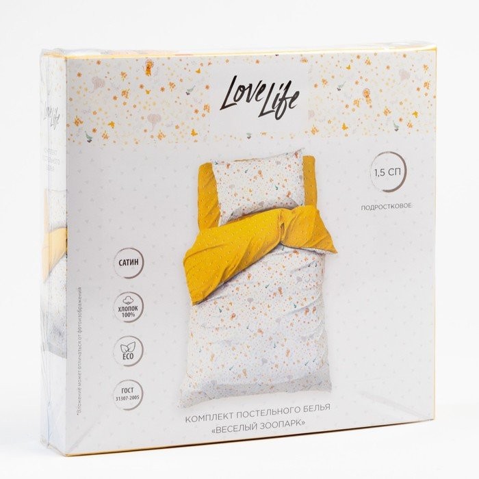Постельное белье 1.5 сп «LoveLife» Веселый зоопарк, 143×215 см,150×214 см,70×70 см-1 шт. сатин