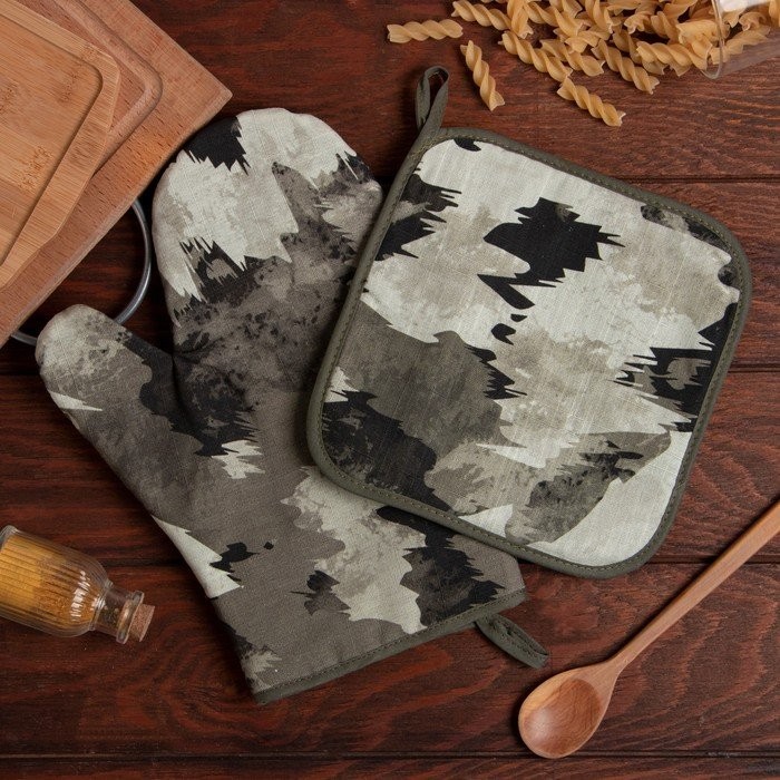 Набор Кухонный «Real hero», варежка-прихватка 20х28см, прихватка 19х19см, 100% хл