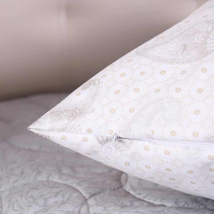 Нижняя наволочка 70х70см на молнии Огурцы серебро №2 (белый), тик 90г/м, пэ70%,хл30%